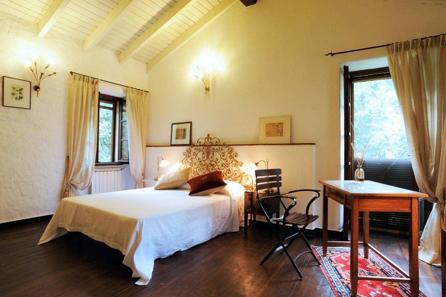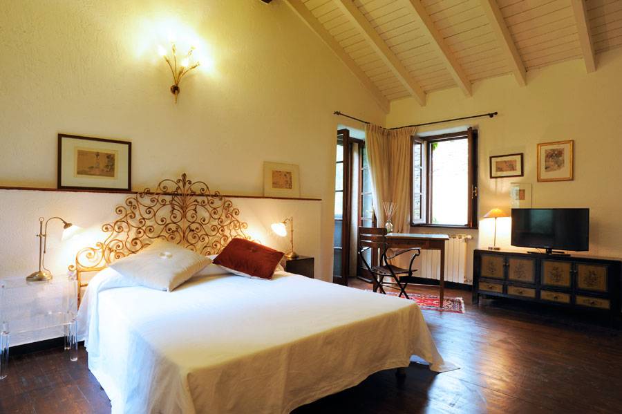 Dieses Zimmer bietet eine gemütliche und intime Atmosphäre. Es blickt auf das Golftal von Garlenda und bietet einen eindrucksvollen Blick auf das Castello dei Marchesi Costa-Del Carretto.