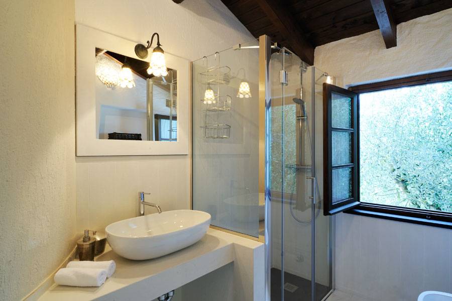DettagliDieses Zimmer bietet eine helle und einladende Atmosphäre. Der Blick auf den Garten und den grünen bewaldeten Hügel bietet ein bezauberndes und entspannendes Naturbild.
