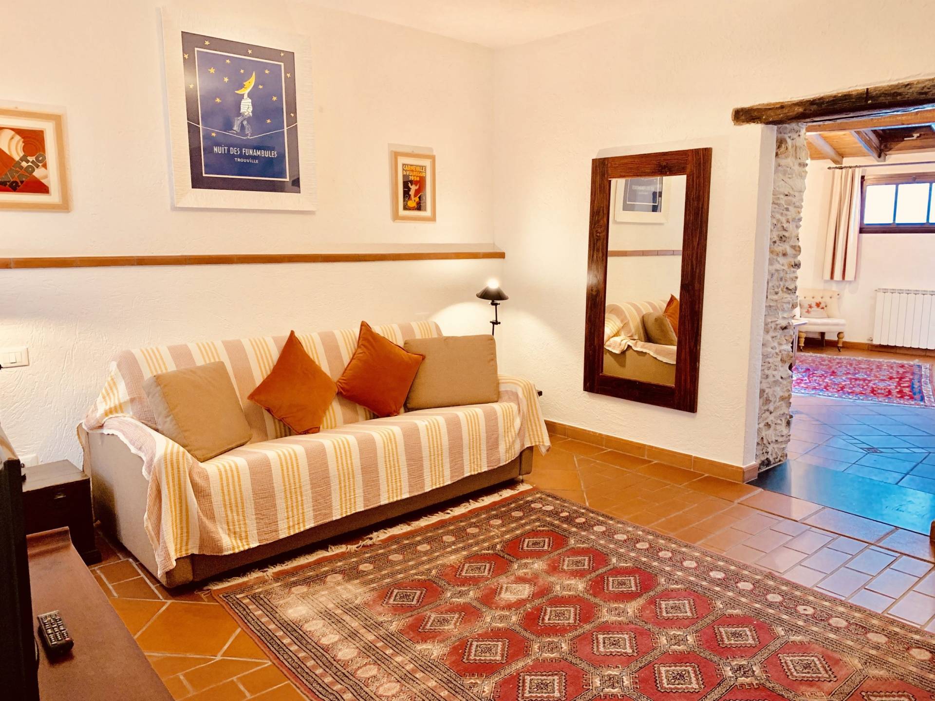 Der Eingangsraum verfügt stattdessen über einen 32-Zoll-Fernseher mit SmartTV und Zugang zu den wichtigsten Streaming-Plattformen über das Internet.